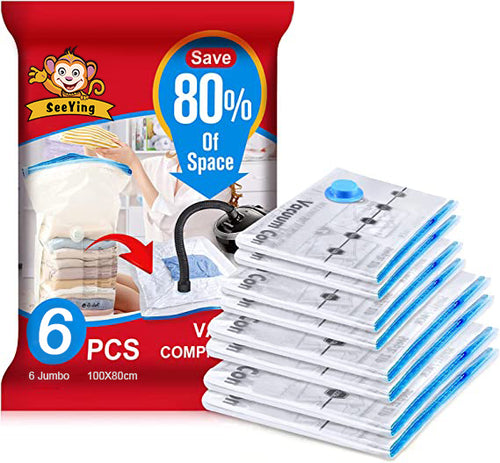 SeeYing Garment bags for storage Thicker Type 6 Pack (6 Jumbo) 80% More Space Saver Bags for Clothes, Blankets, Pillows