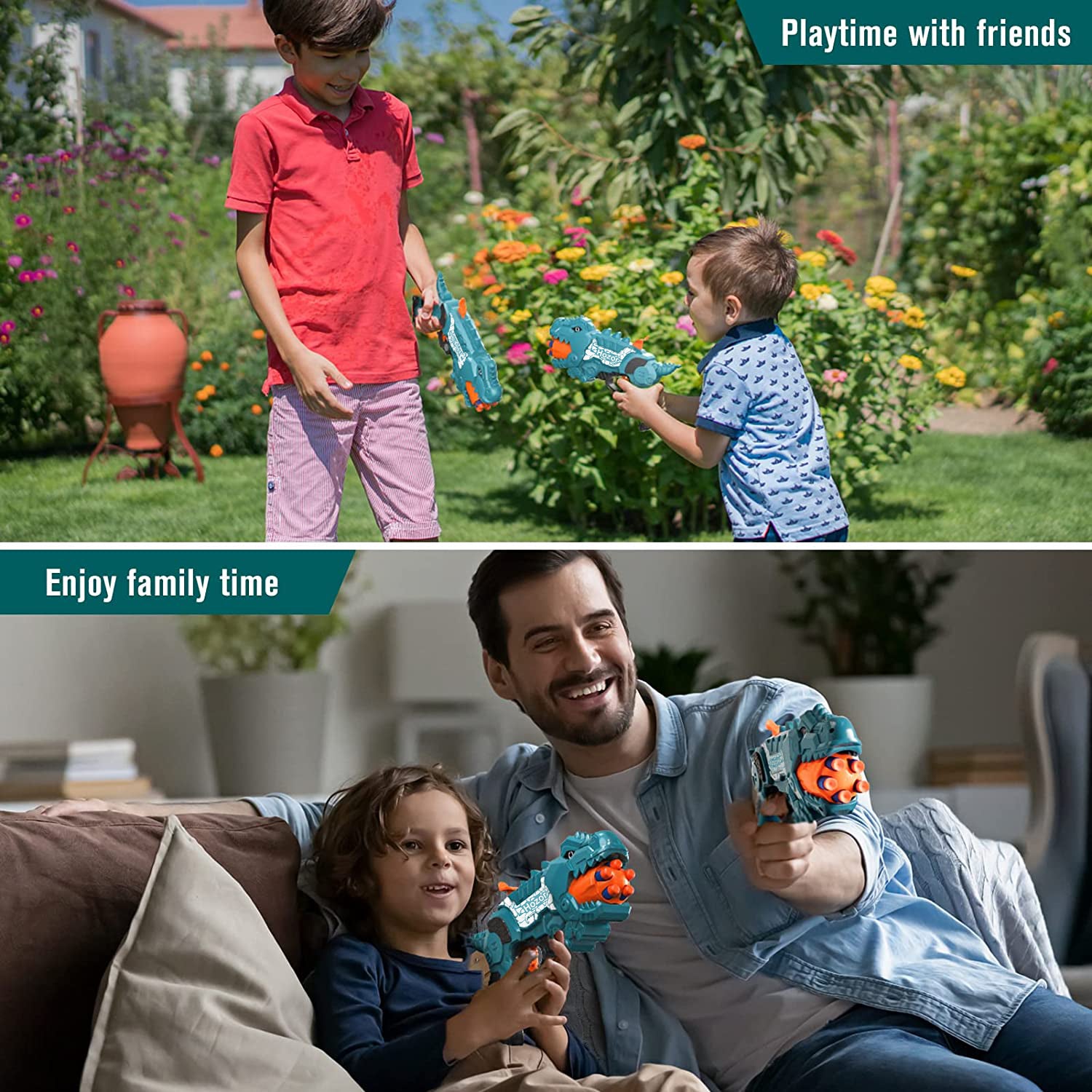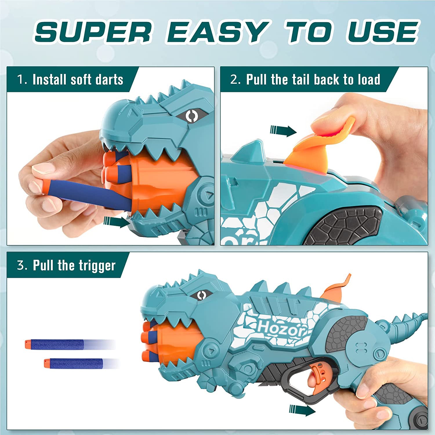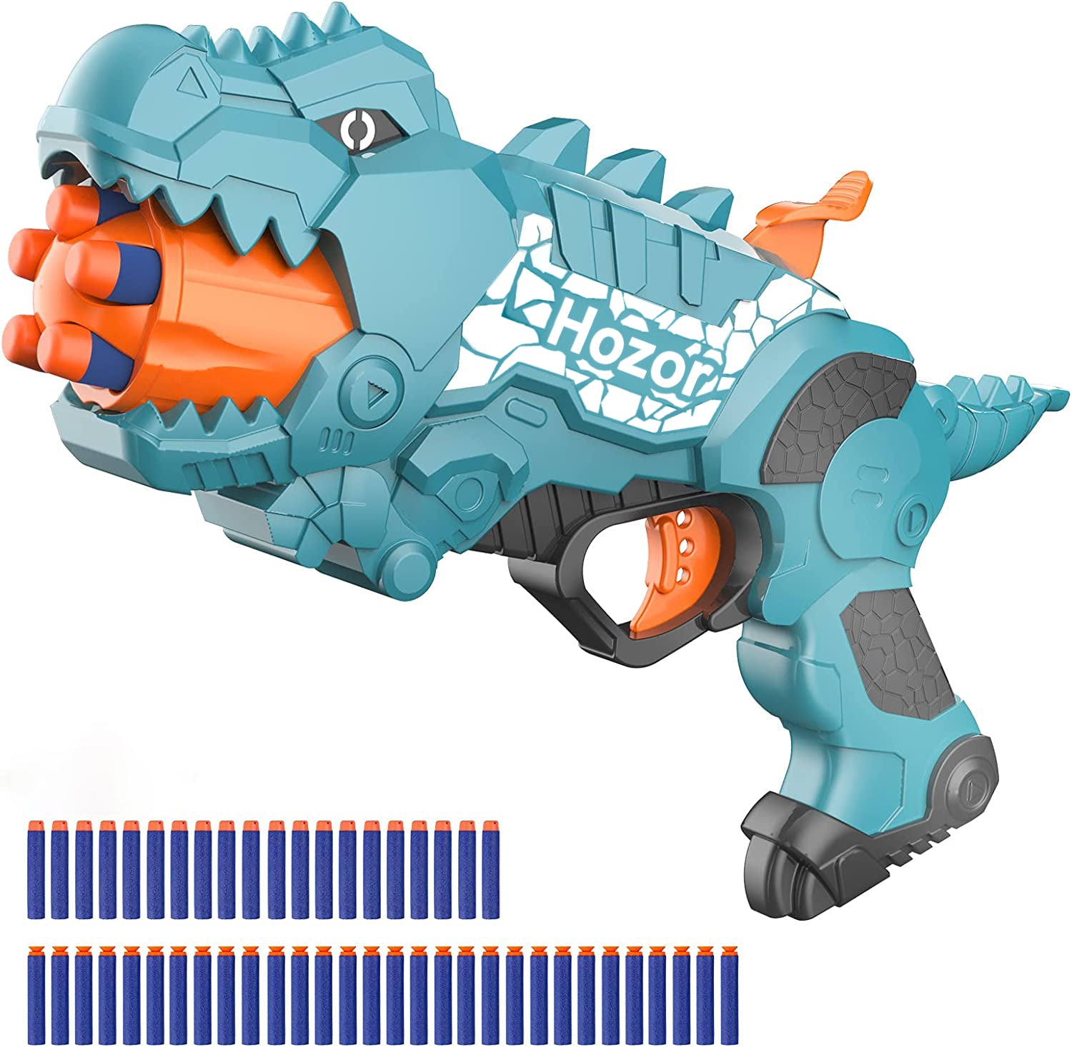 【Safe for Children】Hozor Dinosaur Boy guns are made of high quality ABS material, non-toxic, smooth and round without burr. Toy guns are harmless and suitable for children over the age of eight.