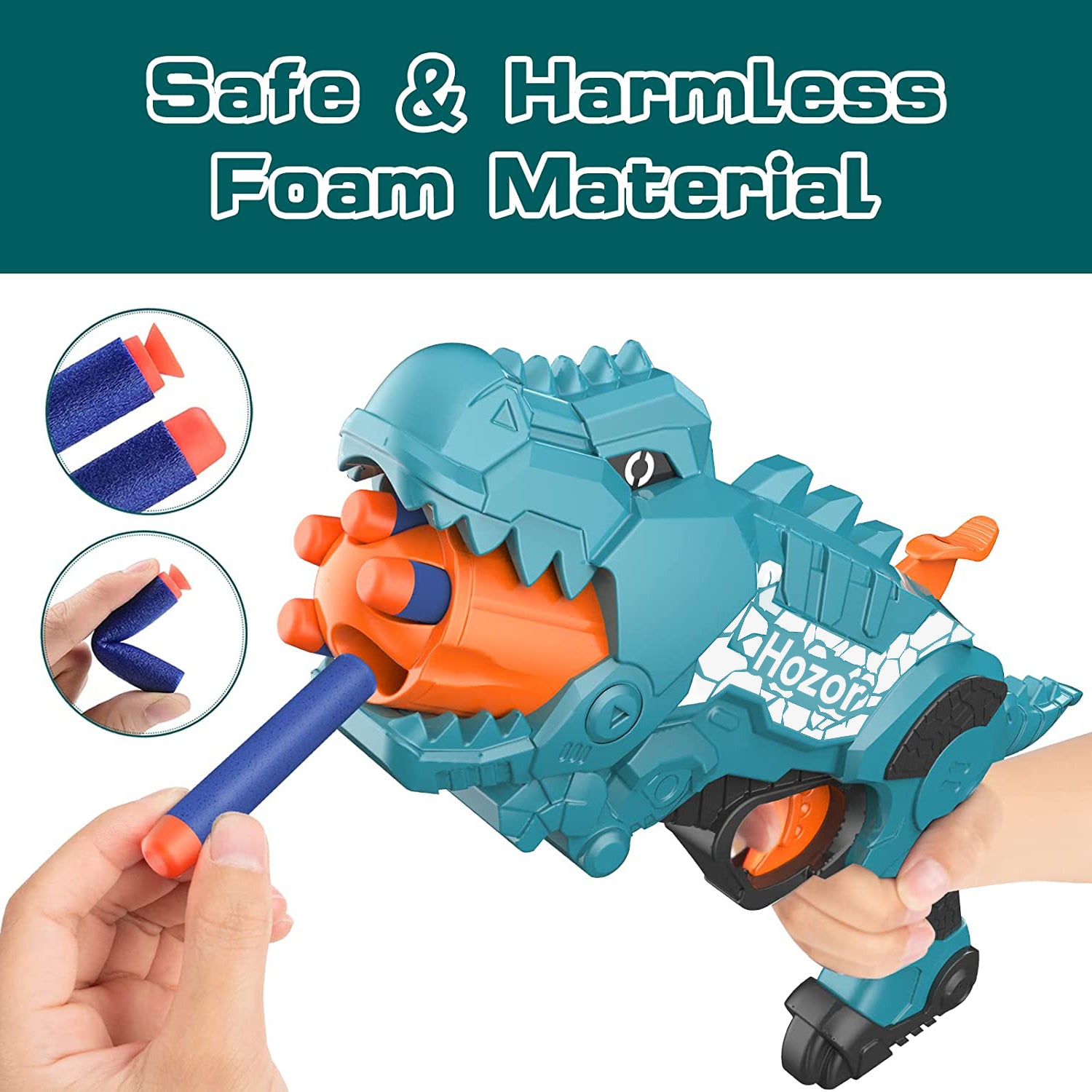 【Add Bullets】Hozor Dinosaur Boy gun originally had 20 soft foam soft head bullets, now has 50 soft foam soft head bullets. Let the kids play enough at once without running around picking up darts.