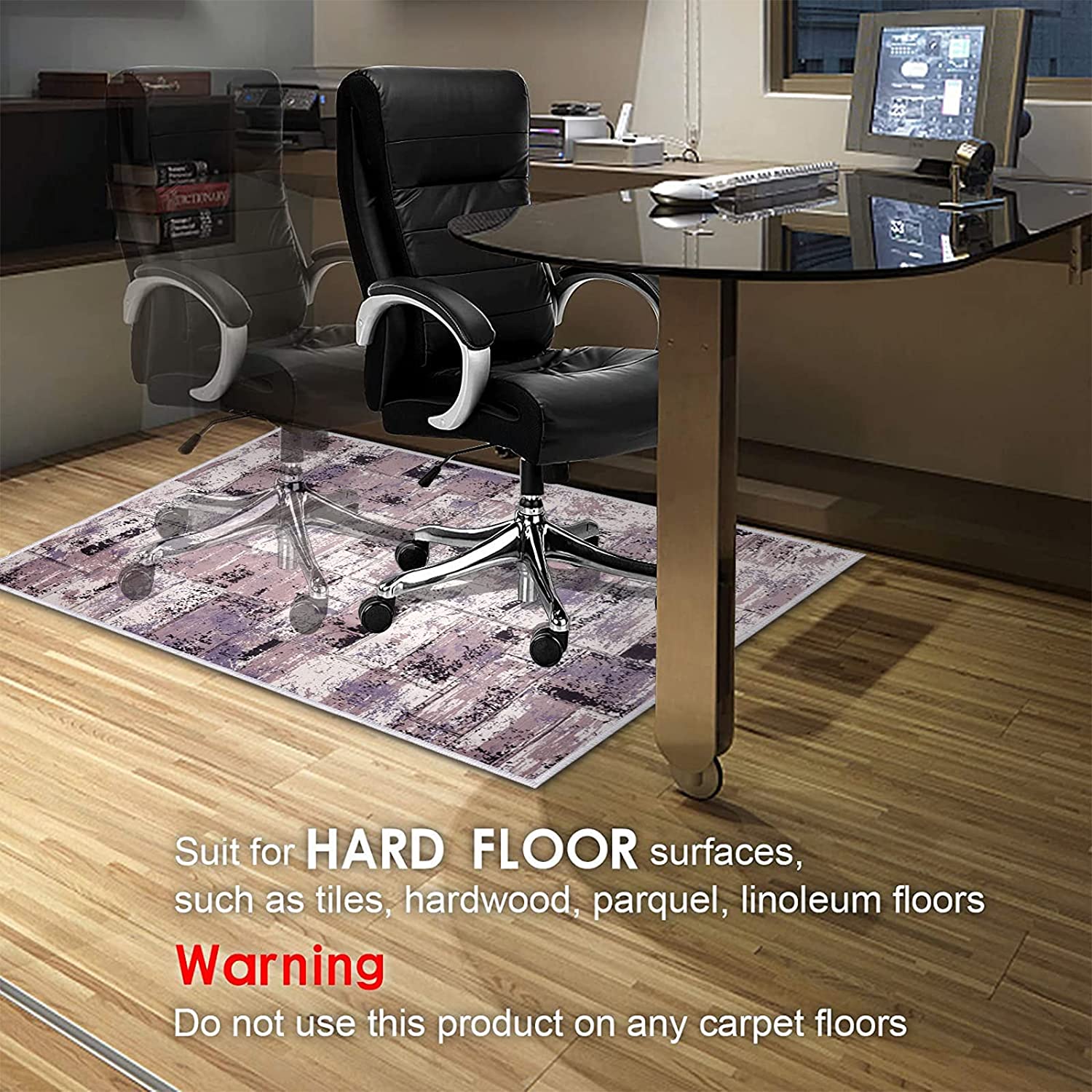 - 【Excellent HARD FLOOR Protector】This chair rolling mat is perfect for hard floor protect. The floor mat is about 0.16” thin, it can protect the wheels of the chair effectively, so that the chair will not damage your wooden floor or ceramic tiles during use, and it can prevent the noise from affecting other people effectively.