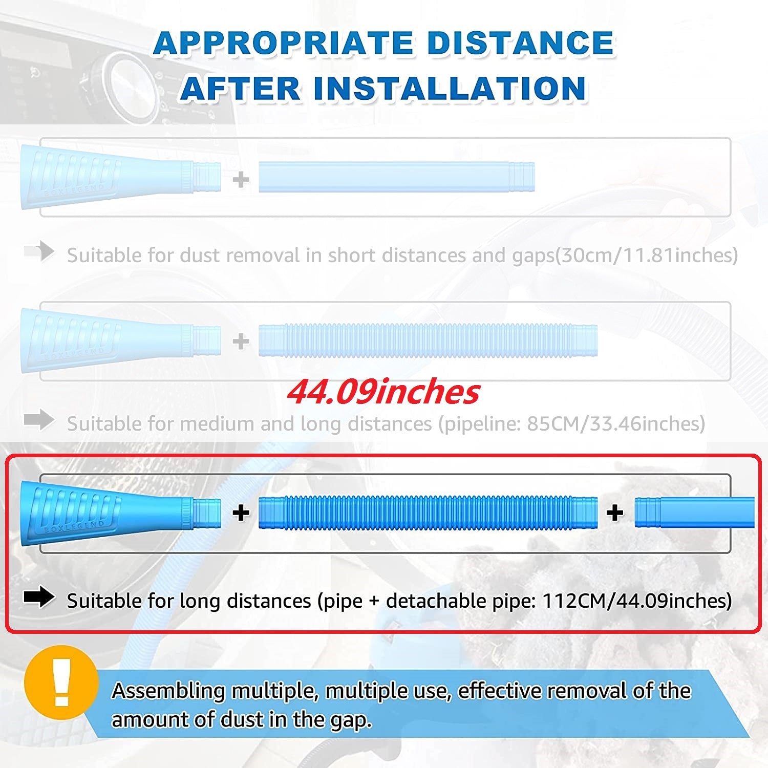 【MULTIPLE COMBINATIONS】-You Can Choose A Variety Of Assembly Methods To Achieve The Distance You Need, And Assemble The Length You Want. The Farthest Distance Can Reach 44.1 Inches, Which Is The Farthest Distance That Can Be Reached By Hand-Held Vacuum Cleaners Currently On The Market.
