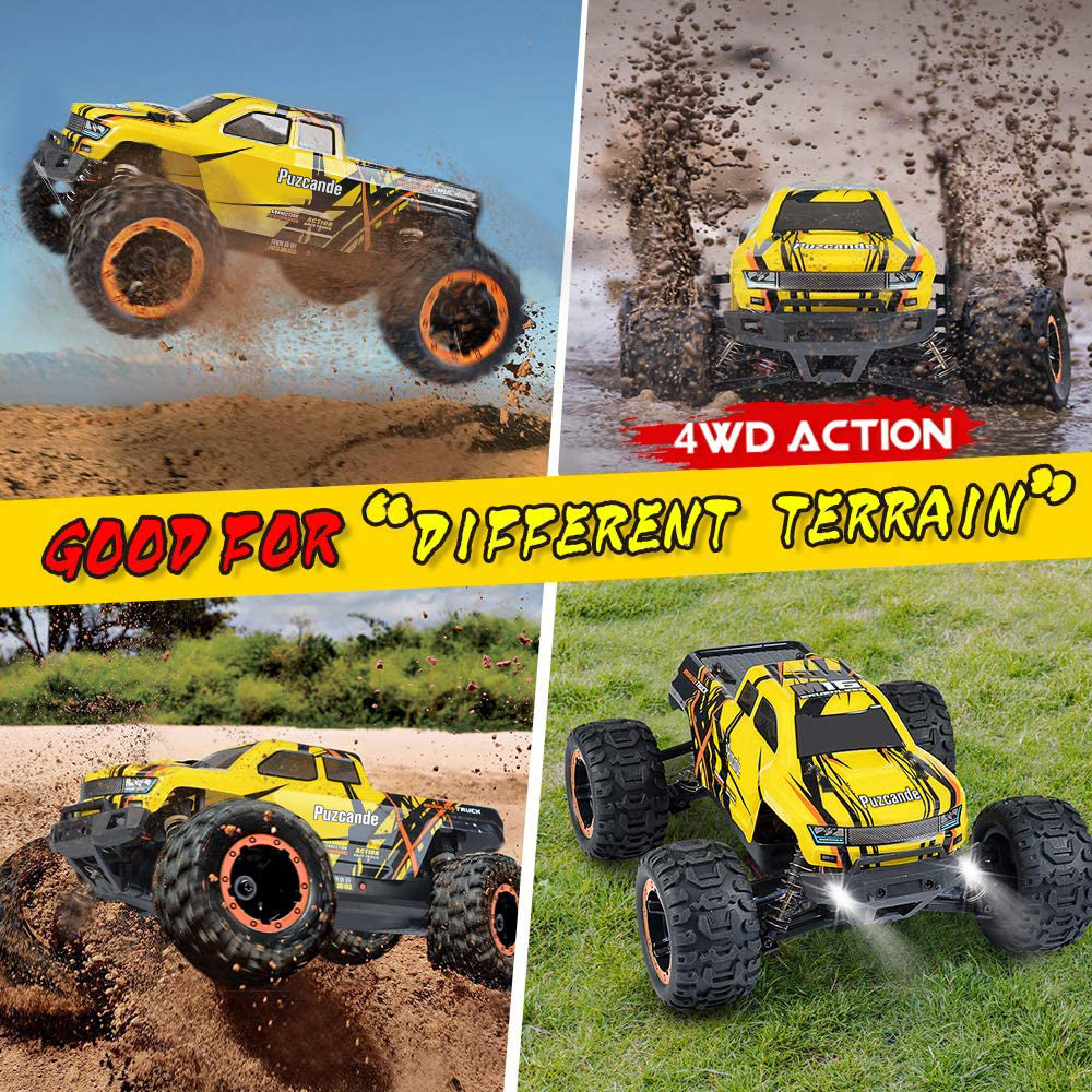 - 【7/24 Customer Support】Our rc truck constructed with anti-skid rubber tires, which allows you to drive the Puzcande rc car in all terrains like beach, sand, rock or concrete road. The cross-country car is ready to use right out of the box. THE BEST GIFT TO CHOOSE. 7/24 Customer support for you whether you order or not. Worry-free for a gift choice.