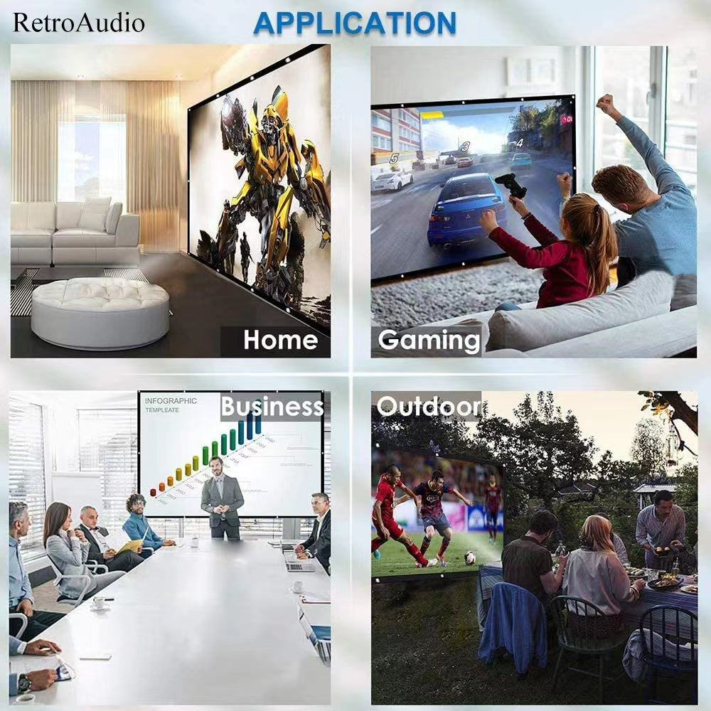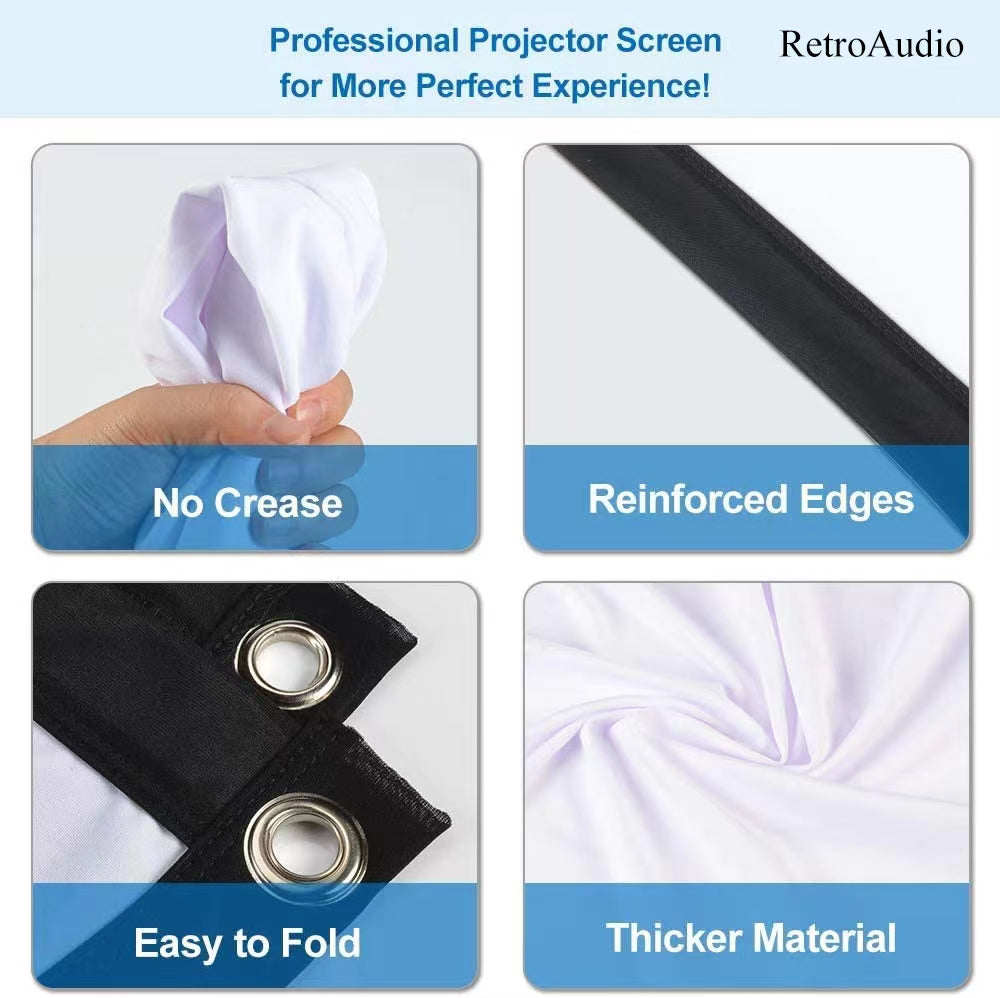 - 【Wide Viewing Angle】RetroAudio Projection Screens can be extended large angle eliminates the need to sit directly in front of the screen like many other old projectors so everyone can see on movie nights. With ultra-large viewing area, invite your families and friends, have a happy movie time together.