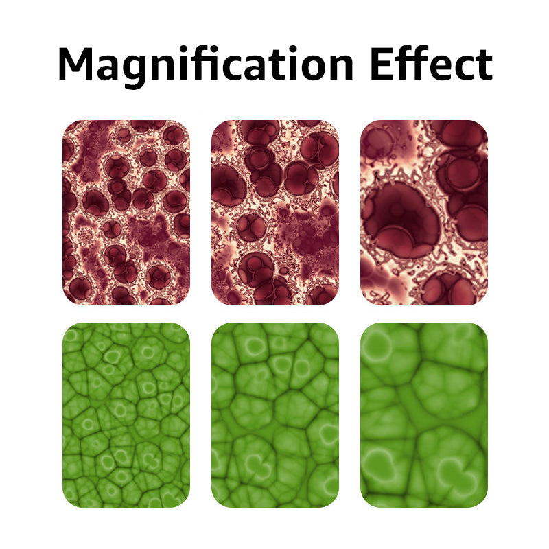 Protect your eyes:This microscope just need connect mobile phone observation, then you can take photos and record.What’s more ,you can use the camera function to watch, which reduce eye fatigue.
