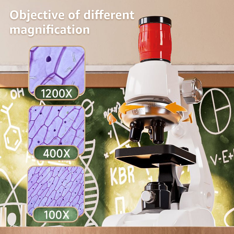 High Magnification:SeeYing teaching special optical microscope, upgrade dimming model, adjust the light brightness, no longer hurt the eyes, three different (100X 400X 1200X )objective make cells have no privacythe artifact world under the microscope, stimulate children's desire to explore.