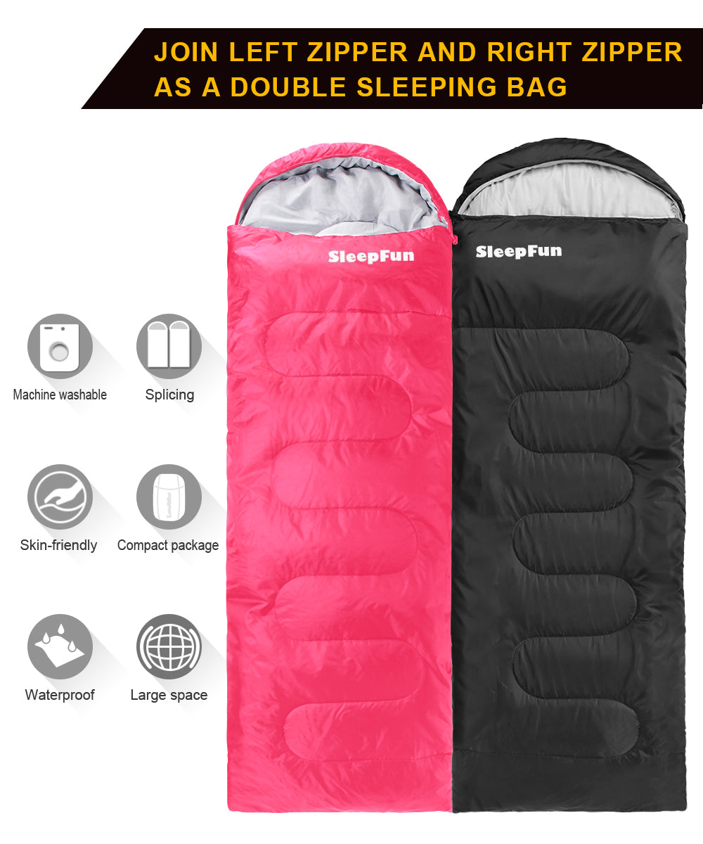 - 【Versatile Sleeping Bag】Zip two together for one large double sleeping bag to keep cozy couples warmer at night. You and your lover can relax and sleep sweetly after kinds of sports. It’s also can be fully opened to be a blanket for picnic or play.The compact sleeping bag wiped easily by hand and allow to machine wash, convenient to clean. Two straps at the bottom or dry the sleeping bag.