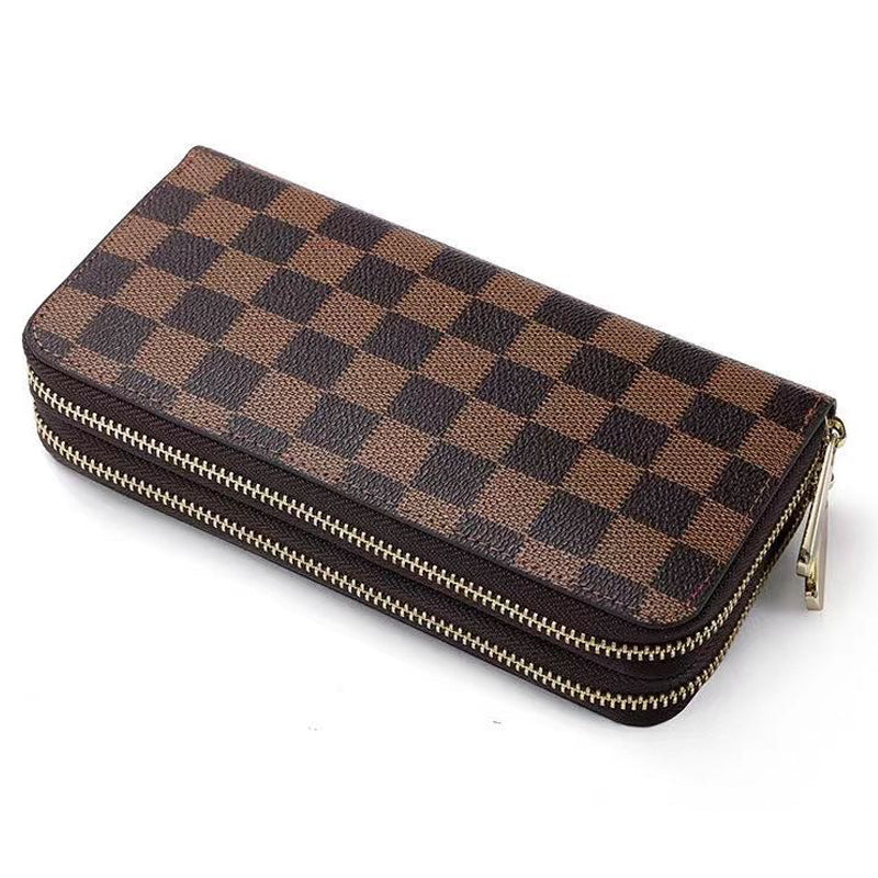 Multifunctional storage:Double-zipper wallet that has two compartments for maximum space for organizing your essentials. Each compartment is divided into 2 sections. One of the compartments has with 1 zipper pocket that divides the pocket and has 8 card slits and two cash slits. The other compartment has a divider as well with 8 card-slits for all forms of cards and 4 long slits for cash, receipts and other belongings. Interior compartments can be used to store a checkbook, stamp cards, and other miscellaneous items.